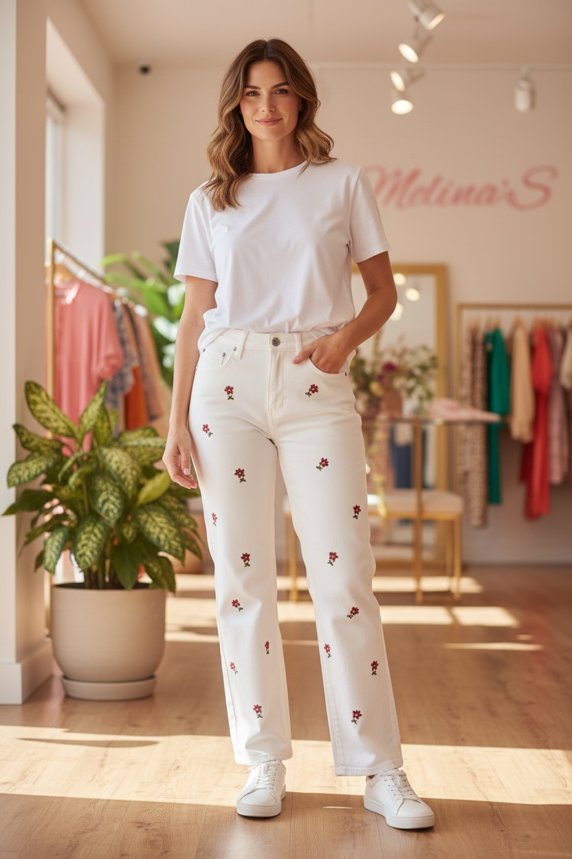 Vaquero blanco PARIS bordado